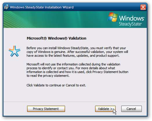 Quando installi SteadyState, dovrai convalidare la tua copia di Windows con Genuine Advantage. Se non hai già lo strumento WGA sul tuo computer, ti verrà chiesto di scaricarlo e installarlo.