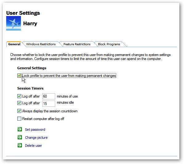 Nel passaggio successivo inizierai con le impostazioni generali e regolerai il tempo che l'utente può trascorrere nel sistema. Assicurati di bloccare il profilo in modo che non possano apportare modifiche permanenti da soli.