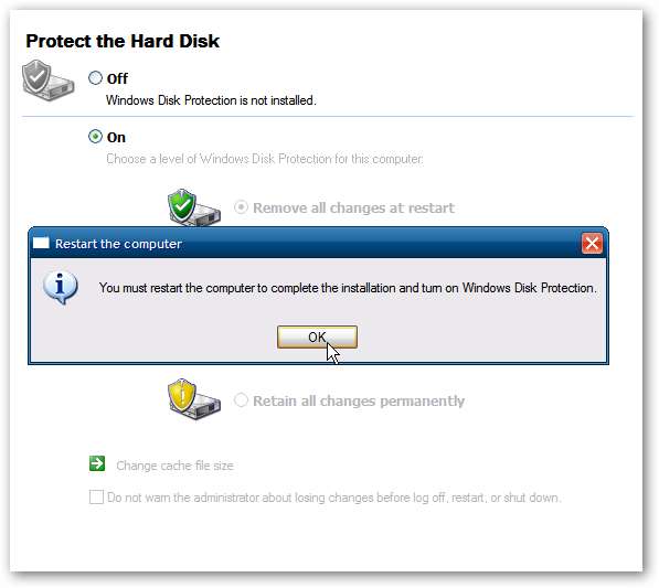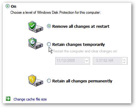 Dopo il riavvio è possibile scegliere un livello di protezione per il disco dalla rimozione sempre delle modifiche, conservandole temporaneamente o consentendo tutte le modifiche.