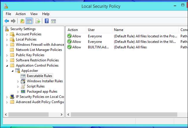 In modo confuso, l'edizione Professional di Windows ti consentirà di creare regole di AppLocker utilizzando l'Editor criteri di gruppo . Tuttavia, queste regole non verranno applicate a meno che non utilizzi un'edizione Enterprise di Windows, quindi non provarci nemmeno. Questa funzione si trova sia in Windows 7 che in Windows 8. Su Windows 7, puoi ottenerla come parte dell'edizione Ultimate di Windows 7 - su Windows 8, non puoi ottenerla affatto senza un contratto di licenza a volume.