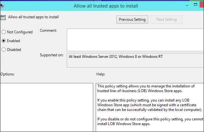 La possibilità di installare app dall'esterno dell'app store è nota come "sideloading". Solo le edizioni Enterprise di Windows hanno il supporto integrato per il sideload e funziona solo quando fanno parte di un dominio Windows. I sistemi aziendali non associati a un dominio Windows non dispongono di questa funzionalità. Anche i computer Windows Professional aggiunti a un dominio non dispongono di questa funzionalità a meno che non si acquisti una licenza speciale tramite il contratto multilicenza Microsoft. La possibilità di eseguire applicazioni che Microsoft non ha specificamente approvato è solo per le organizzazioni con contratti di multilicenza.