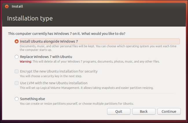 WubiはUbuntuを試すのに最適な方法ですが、ぜひ試してみてください。 独自のパーティションにUbuntuを使用してデュアルブートシステムをセットアップする 最高のパフォーマンスを得るために。暗号化を有効にすると、入出力のパフォーマンスも少し低下しますが、Wubiのパフォーマンスが大幅に低下することはないはずです。