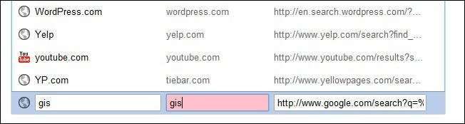 3番目のボックスのURLに、このテキストを入力します hっtp://wっw。ごおgぇ。こm/せあrch?q=%s&hl=えん&tbm=いsch&prmd=いmvんs&そうrせ=lんt&tbs=いmご:1&さ=X (ありがとう Google検索ヘルプフォーラムのSRTFilter その検索文字列に対して)。これで、アドレスバーに「gisyourquery」と入力すると、画像サイズがすでに有効になっているカスタムのGoogle画像検索が表示されます。