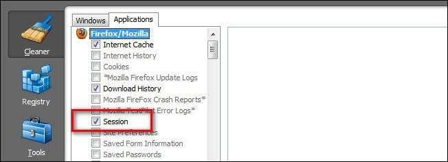 Firefoxの問題について:FFは、記憶されたタブをセッションデータの外部に保存するために使用されていました。これで、タブデータがセッションデータ内に保存されます。次回CCleanerを実行するときは、必ず[アプリケーション]タブをクリックし、Firefox / Mozillaの下の[セッション]のチェックを外してください。