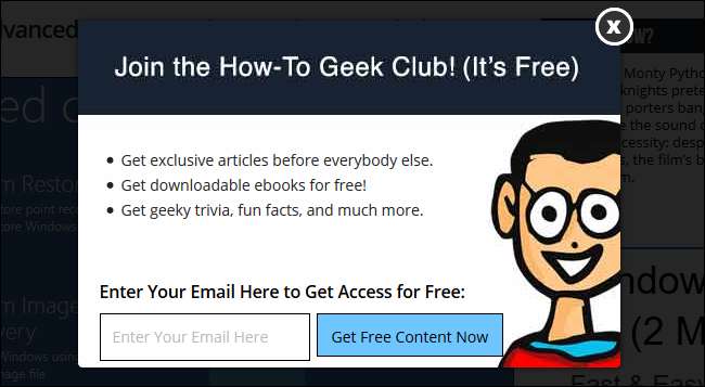 実際、ハウツーオタクでこれを行っています。初めてサイトにアクセスすると、サインアップするかどうかを尋ねる1回限りのメッセージが表示されます。 ニュースレター 。このメッセージを拒否した場合、ニュースレターを1年間再度購読するように求められることはありません。私たちはあなたのシステムにクッキーを保存することによってそれを達成します。ただし、毎日Cookieをクリアすると、そのオーバーレイが毎日表示されます。この場合、Cookieは実際には やめる サイトが邪魔にならないようにします。
