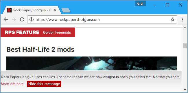 他の多くのウェブサイトも同様のことをしています。たとえば、ヨーロッパに拠点を置くWebサイトは、最初にアクセスしたときにCookieの警告を表示することがよくあります。メッセージを非表示にして二度と表示されないようにするには、ウェブサイトでブラウザにCookieを設定する必要があります。 Cookieをクリアするか、最初からWebサイトがCookieを設定しないようにすると、サイトにアクセスするたびにCookieの警告メッセージが表示されます。
