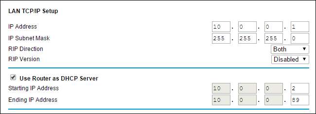 同様に、古いルーターのDHCPサーバーの設定を新しいルーターと一致させる必要があります。具体的には、DHCP割り当てプールの範囲です。上のスクリーンショットでは、元のルーターに* .2と* .89の間にプールがあることがわかります(したがって、動的に割り当てられたすべてのネットワークアドレスはその87 IPブロックから提供されます)。 DHCPの手順は、設定した静的IPアドレスに割り当てられたスペースを保持するために重要です。