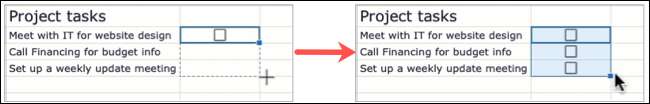 隣接セルでチェックボックスを追加したい場合は、塗りつぶしハンドルを使用して、残りのセルを介してチェックボックスをドラッグできます。