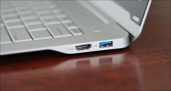 今日、VGAポートを備えたラップトップを見つけるのは、パラレルポートを備えたラップトップを見つけるのと同じくらい難しいでしょう。アナログ周辺機器接続の時代は、あちこちのレガシー指向のビルドを除けば、モバイルコンピューティングでは長い間過ぎ去っています。これは、モニターをラップトップに接続する方法がないという意味ではありません。外部ディスプレイ用のラップトップの新しい標準は、細くて見落とされがちなHDMIポートです。 (左下の写真をご覧ください。)