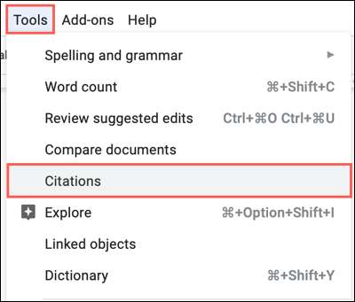 始めるには、Googleドキュメントで編集する文書を開き、[Tools]をクリックします。メニューからの引用。