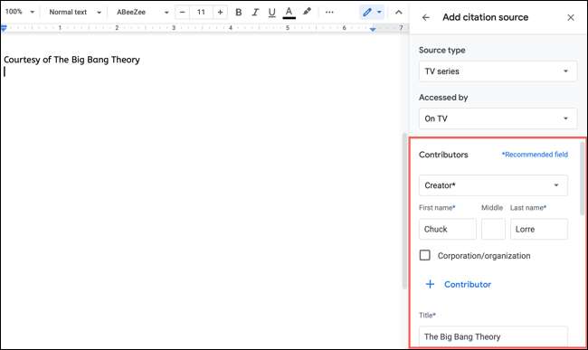 これで、引用形式とソースタイプを追加するためのすべての推奨される詳細が表示されます。できるだけ多くの情報を入力してください。