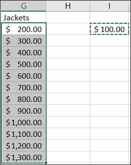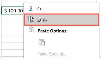 データセットの外側のセルに100ドルを入力してコピーします。コピーする必要があるのは、シートまたはワークブックにデータがすでにあるかもしれません。