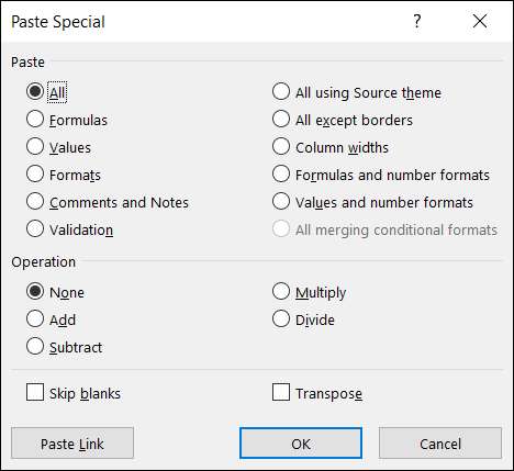 基本番号、小数点数、通貨の場合は、ウィンドウの貼り付けセクション内のすべて、値、または値と数値の形式から選択できます。に最適なオプションを使用してください あなたの特定のデータとフォーマット 。