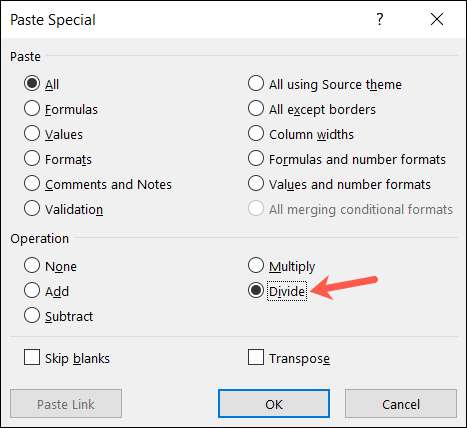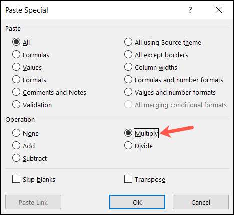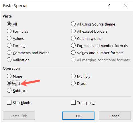 次に、[演算]というラベルの設定のセクションを使用して追加、減算、乗算、または分割します。