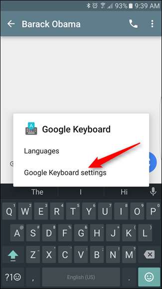 リリースすると、いくつかのオプションを含む小さなポップアップメニューが表示されます。[Googleキーボードの設定]をタップするだけです。