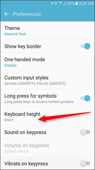 このメニューには便利な(そして新しい!)オプションがたくさんありますが、私たちが探しているのは「キーボードの高さ」です。それはほとんど理にかなっているようですよね?