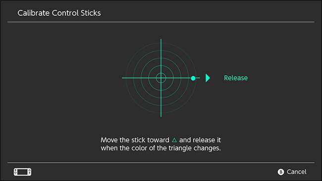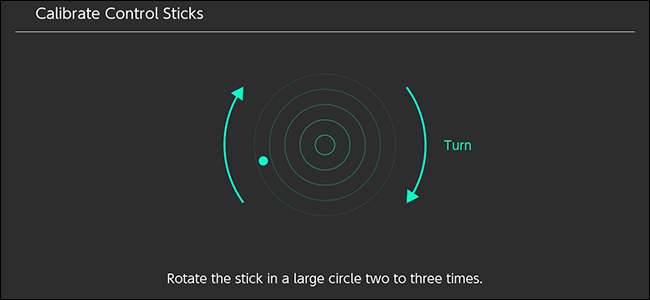 画面のプロンプトに従って、指示された4つの方向のそれぞれにコントロールスティックを移動します。スティックを指示された方向まで完全に押してから放します。