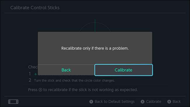 問題がある場合にのみ調整するように通知する短いウィンドウが表示されます。悪いゲームをしたという理由だけでコントロールスティックを再調整すると、結果的に悪化する可能性があります。入力が正しく検出されていないことが確実な場合(そして、さらに練習する必要がない場合)は、[調整]を選択します。