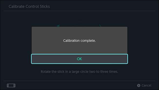 ポップアップが表示され、キャリブレーションが終了したことが示されます。テスト画面でコントロールスティックをもう一度テストするか、ゲームを起動して、コントロールスティックがどの程度うまく機能するかを確認できます。