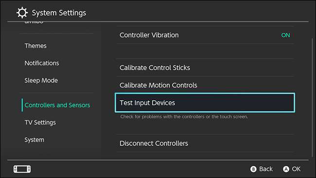 自分で行うことができるキャリブレーションは以上ですが、ボタンとタッチスクリーンをテストして、それらが正しく機能していることを確認することもできます。 [コントローラーとセンサー]メニューに戻り、[入力デバイスのテスト]を選択します。