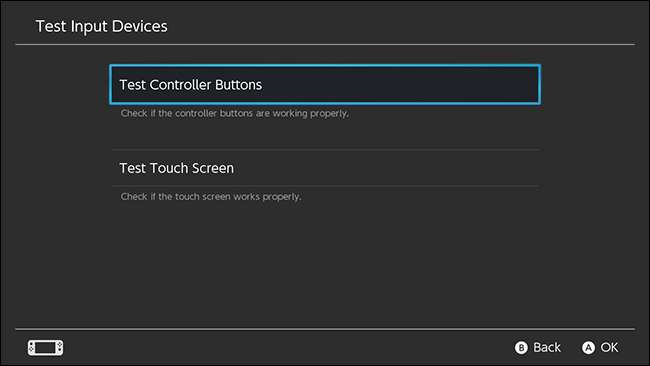 この画面には、2つのオプションがあります。まず、テストコントローラーボタンについて見ていきます。このオプションを選択して、スイッチがボタンの押下を正しく読み取っていることを確認します。