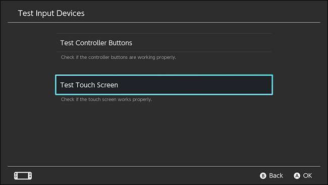[入力デバイスのテスト]画面に戻ると、コンソールのタッチスクリーンが正しく機能していることを確認するオプションもあります。これを行うには、[タッチスクリーンのテスト]を選択します。