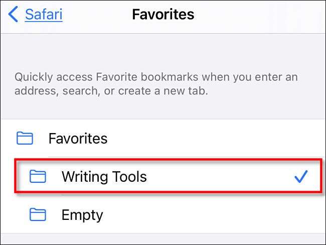 表示されるリストで、別のフォルダを選択します。 (リストに他のフォルダが存在しない場合は、[ブックマーク]ボタンをタップし、[編集]ボタンを選択して[新しいフォルダ]ボタンをタップすることで、Safariに新しいフォルダを作成できます。)