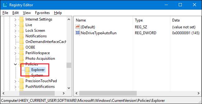 HKEY_CURRENT_USER \ SOFTWARE \ Microsoft \ Windows \ CurrentVersion \ Policies \ Explorer \