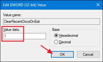 値を設定し、その値を1に設定します。「終了時に最近のドキュメントをクリアするを無効にする(デフォルト)」ハックを実行すると、値が削除され、Windowsを終了したときに最近のドキュメントリストを保持するというデフォルト設定が復元されます。レジストリをいじるのが好きなら、時間をかけて学ぶ価値があります