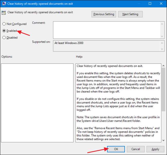 これで、ローカルグループポリシーエディターを終了できます。次にWindowsを終了するときに、最近のドキュメントのリストをクリアする必要があります。いつでも変更を元に戻したい場合は、同じ手順に従って、「終了時に最近開いたドキュメントの履歴をクリアする」設定を「無効」または「未構成」に戻します。