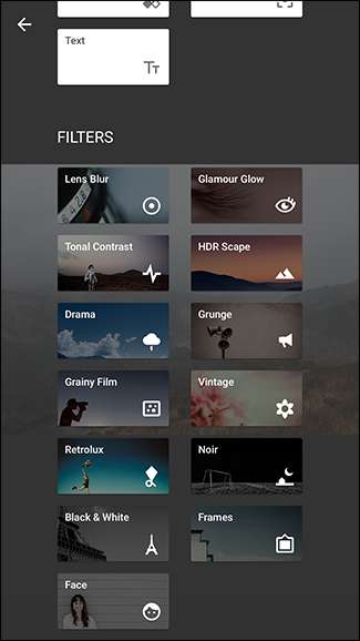そうすると、いくつかのフィルターが表示されます。これらのいくつかは白黒なので、スクロールして好きなものを見つけて選択してください。