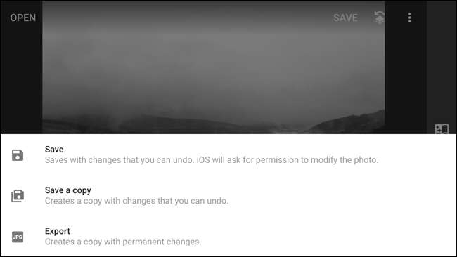 [保存]ボタンをタップして、使用するオプションを選択します。通常、私はコピーを保存します。