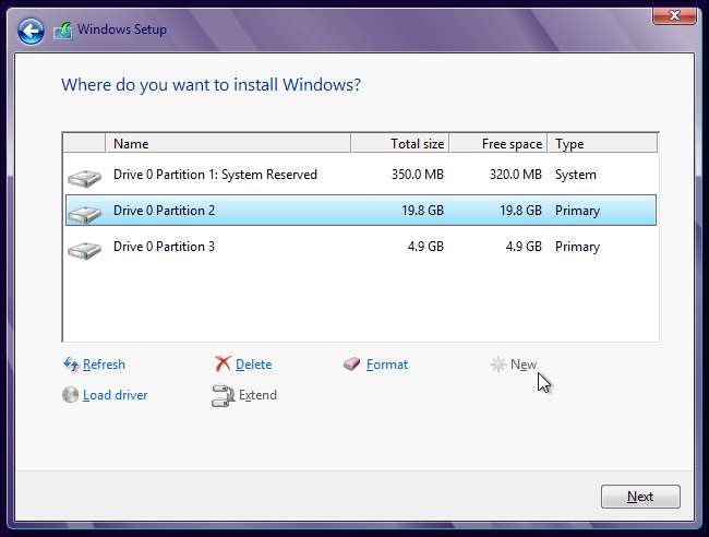 パーティションのサイズに問題がなければ、Windowsをインストールするパーティションを選択し、[次へ]ボタンをクリックします。 Windowsはそのパーティションにインストールされます。他のパーティションのスペースは、Windowsでは独自のドライブ文字として使用できます。