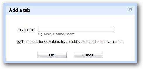 以前にGoogleを使用したことがある(そして使用したことがない)場合は、「I’mFeelingLucky」オプションに慣れているはずです。追加するタブの種類はわかっているが、ページに配置するガジェットがわからない場合は、iGoogleに任せてください。検索語を入力し、「ラッキーだと思っています…」の横にあるボックスをクリックするだけで、魔法のように、すばらしいガジェットが既に表示された新しいタブが表示されます。