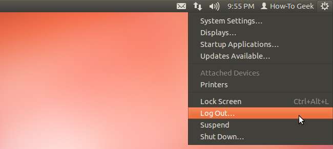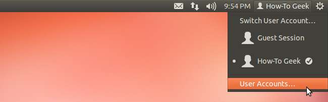 ログイン中は暗号化を削除できないため、最初に別のユーザーアカウントに切り替える必要があります。これを行う最も簡単な方法は、管理者(sudo)権限を持つ別のユーザーアカウントを作成することです。別のユーザーアカウントを作成するには、パネルで自分の名前をクリックして、[ユーザーアカウント]を選択します。