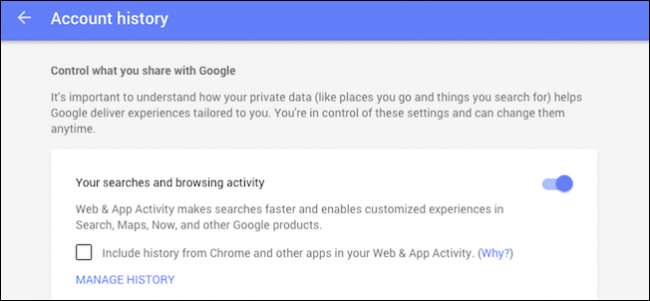 「履歴の管理」をクリックして、検索アクティビティの履歴とその他の設定にアクセスします。