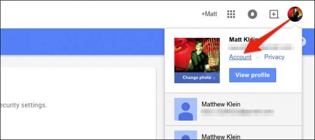 アカウント設定にアクセスするには、myaccount.google.comにアクセスするか、右上隅にある画像をクリックしてから[アカウント]をクリックします。
