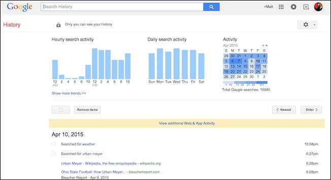 ただし、それ以外の場合は、いつでもGoogleアカウントから検索履歴を表示できます。