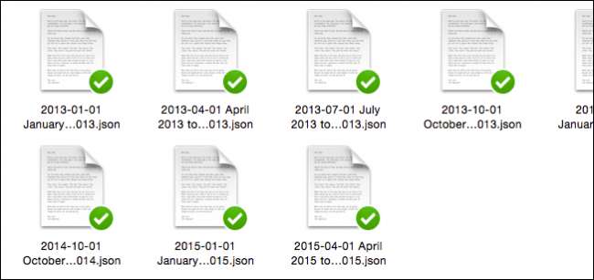 Googleが検索履歴をアーカイブすると、検索履歴が複数のJSONファイルに分割され、それぞれが約4か月のアクティビティで日付順に並べ替えられます。