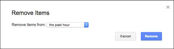 「過去1時間」から「時間の始まり」までの検索履歴を削除するためのダイアログが表示されます。