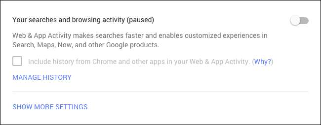 これで、オン/オフスイッチが灰色であることがわかるように、検索およびブラウジングアクティビティが一時停止されます。