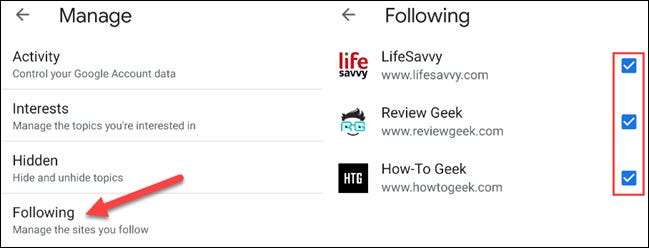 ここから、「フォロー」に進み、もう表示したくないWebサイトをオフにします。