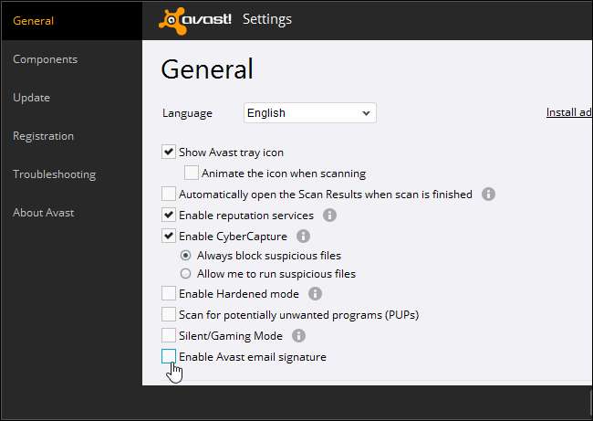 この機能はあなたを困らせることはありませんが、あなたがメールを送る相手を苛立たせます。アバストは、送信する電子メールに自動的に署名を追加し、それ自体を宣伝します。