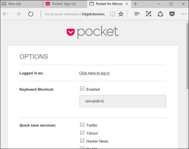 [オプション]ボタンをクリックすると、Edgeがその拡張機能に固有のオプションを含むページを開くので、お好みに合わせて拡張機能を構成できます。オプションを設定し、完了したらブラウザタブを閉じます。