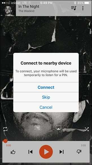 まだ許可がない場合は、スマートフォンのマイクを使用する許可をアプリに与える必要があります。 Google Homeは、聞こえない音声信号を発信し、近くのデバイスがそれを聞くと、その信号を使用してGoogleHomeに接続します。または、それでも問題が解決しない場合は、上記の4桁のPINコードを入力します。