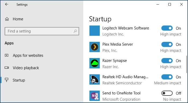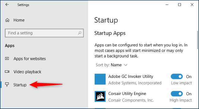 スタートアッププログラムを管理するには、[設定]> [アプリ]> [スタートアップ]に移動します。