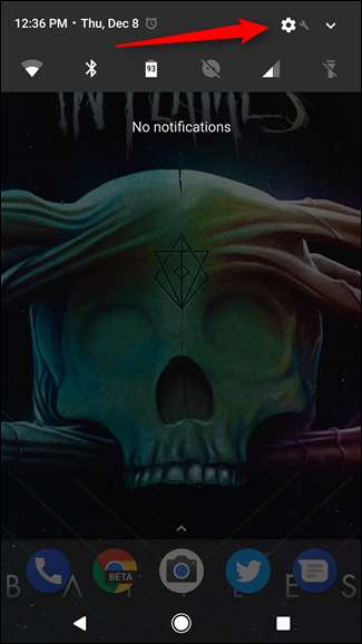 Androidで更新を手動で確認するには、最初に[設定]メニューにジャンプする必要があります。通知シェードをプルダウンし、歯車アイコンをタップして開始します。