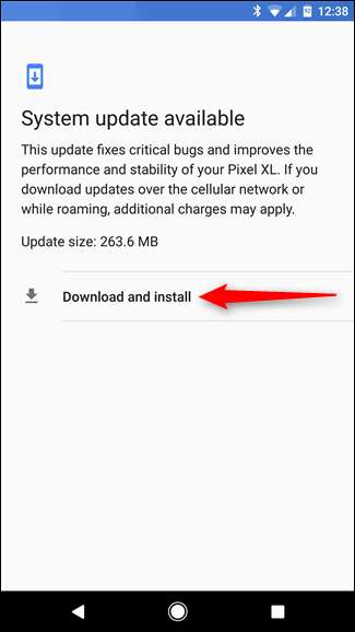 Androidは、特定のモデルごとにGoogleのアップデートサーバーを監視するように設計されています。新しいバージョンがリリースされると、アップデートがダウンロード可能であるという通知が数日以内に届きます。この通知は、通知トレイの他の通知と同じように表示されます。タップすると、新しいバージョンがインストールされます。