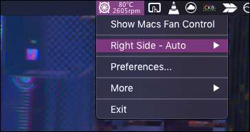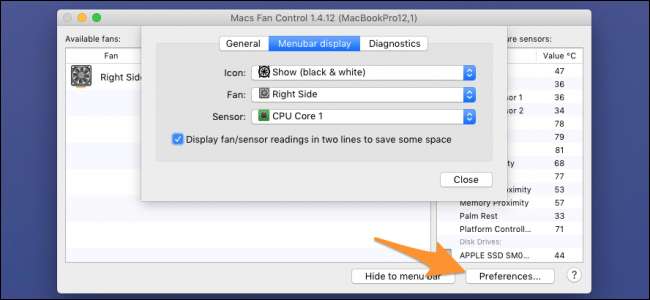 アプリケーションを常に開いたくない場合は、ファンとセンサーの1つを設定して、アプリアイコンを使用してメニューバーに表示することができます。これらの設定にアクセスするには、右下隅にある[設定]ボタンをクリックします。