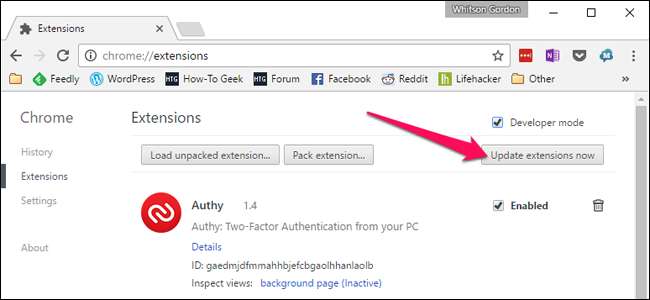 Google Chromeは通常、拡張機能を自動的に更新しますが、新しい拡張機能のバージョンに関するニュースが表示されたら、それが必要です。 たった今 。再読み込みせずにChromeにすべての拡張機能をアップグレードさせる方法は次のとおりです。